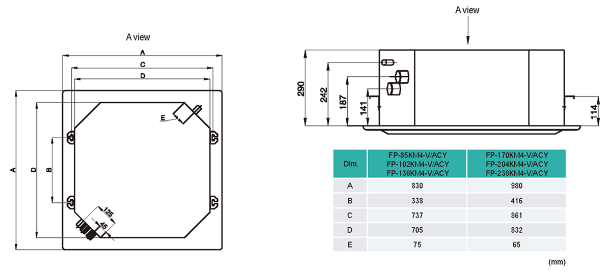 Drain Pump: 700mm head with float switch and no-return vavle; 2 drain pump inside; 1200mm head is optional