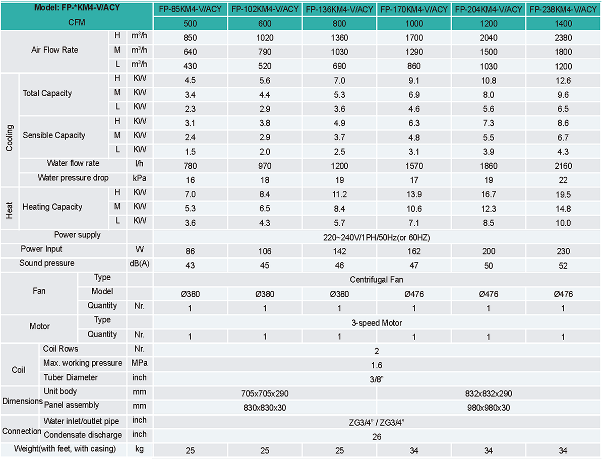 Fan/Motor: Centrifugal fan wiht 3 speed motor or EC motor